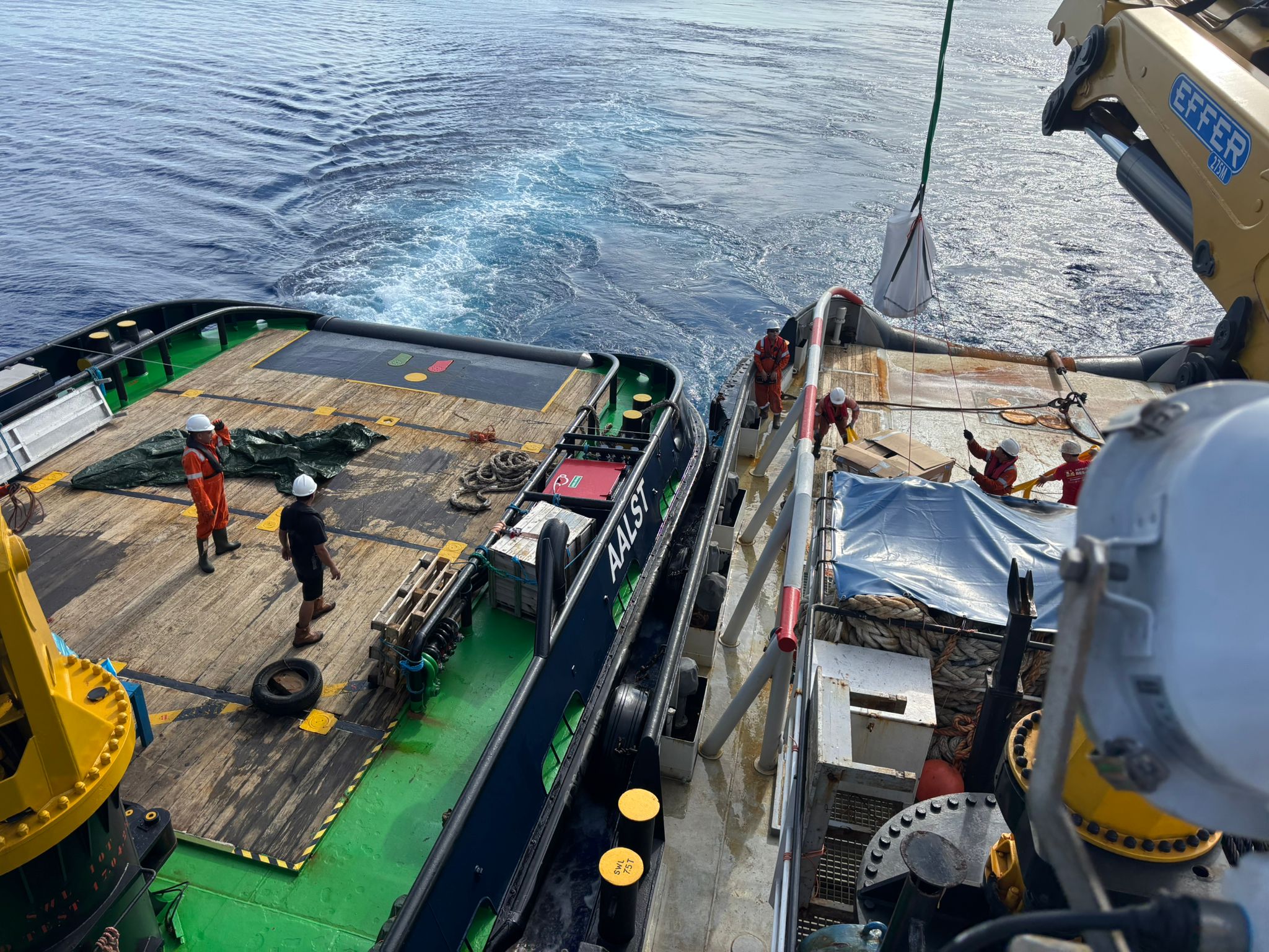 This unique rendezvous between two Neptun vessels was not only a magnificent sight but also a special moment for the crews. They took the opportunity to warmly greet one another and even exchanged goods right there at sea, a fine example of teamwork and camaraderie, far from shore.